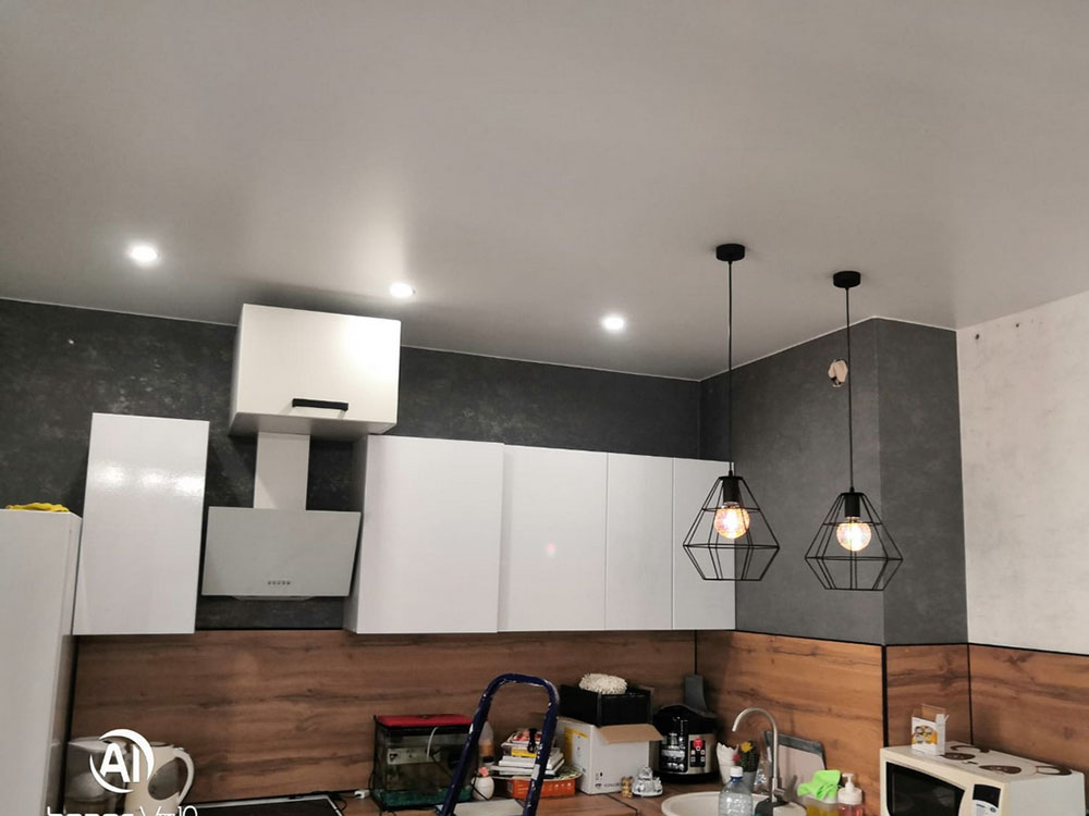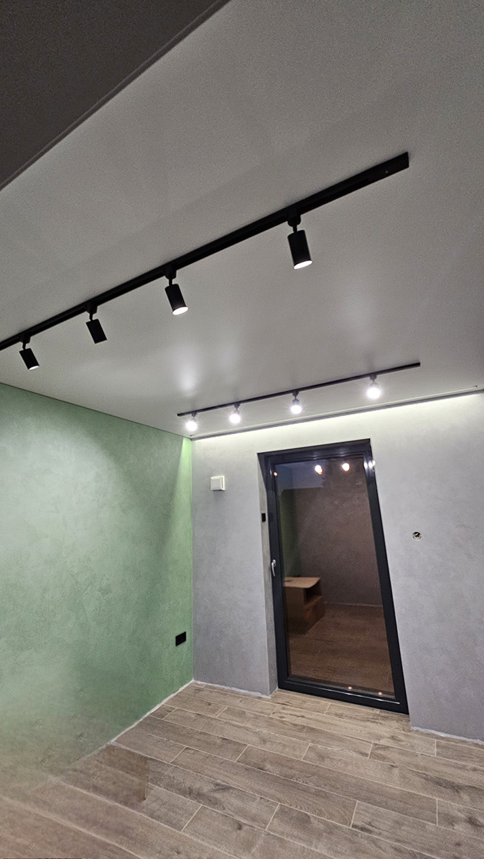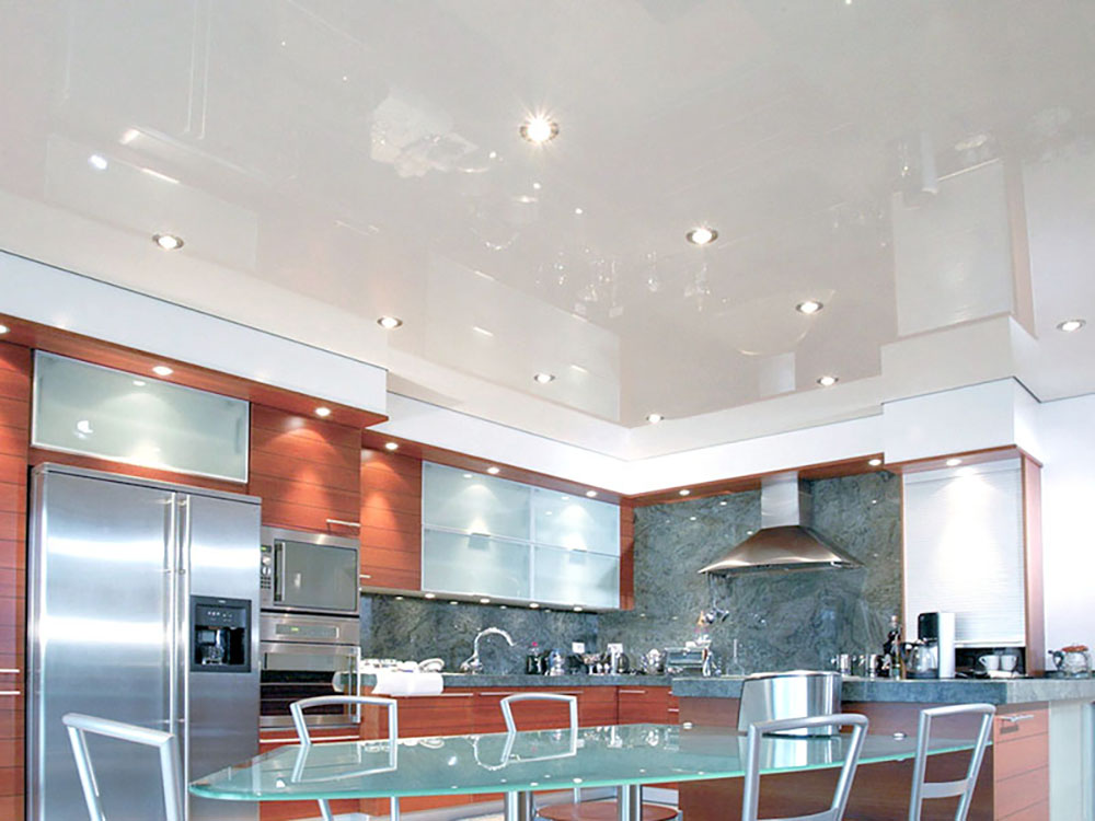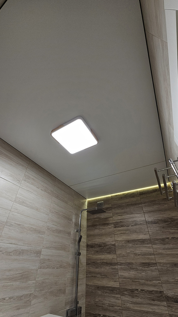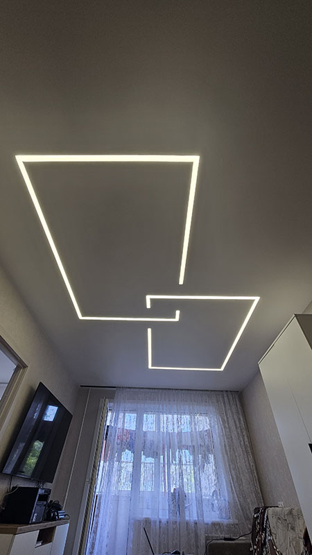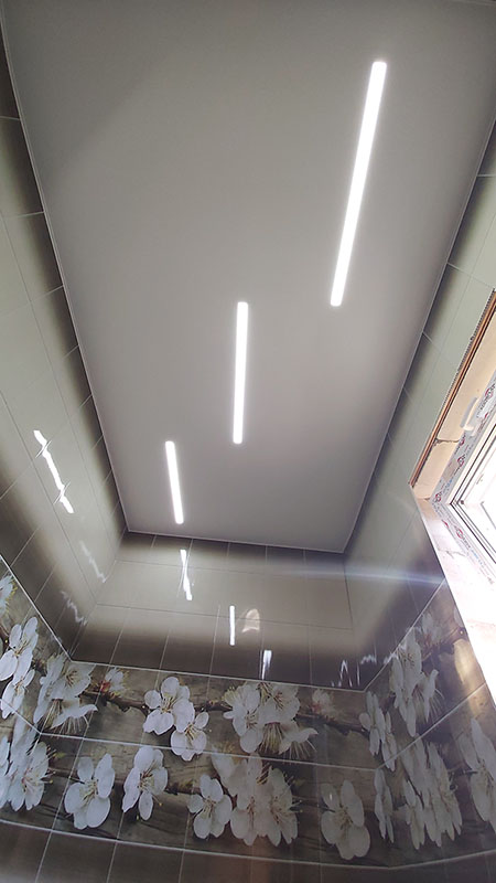 В наличии – широкий выбор оттенков и фактур пленки, несколько видов тканей, более 20 вариантов конструкций. Подберем оптимальные источники света: люстры, светильники, световые линии, лайтбоксы.