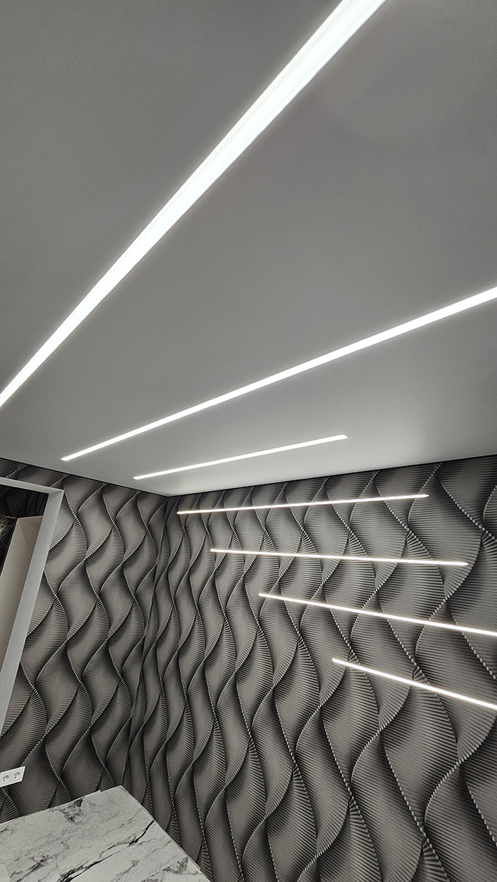 Устанавливаем натяжные потолки всех уровней сложности. Работаем с тканью и ПВХ-пленкой. Наше собственное производство гарантирует высокое качество продукции и услуг. Собственная логистика обеспечивает своевременную доставку материалов и оперативный выезд монтажников без задержек. Все специалисты регулярно проходят обучение и умеют работать с разными профильными системами, световыми линиями и трековым освещением.